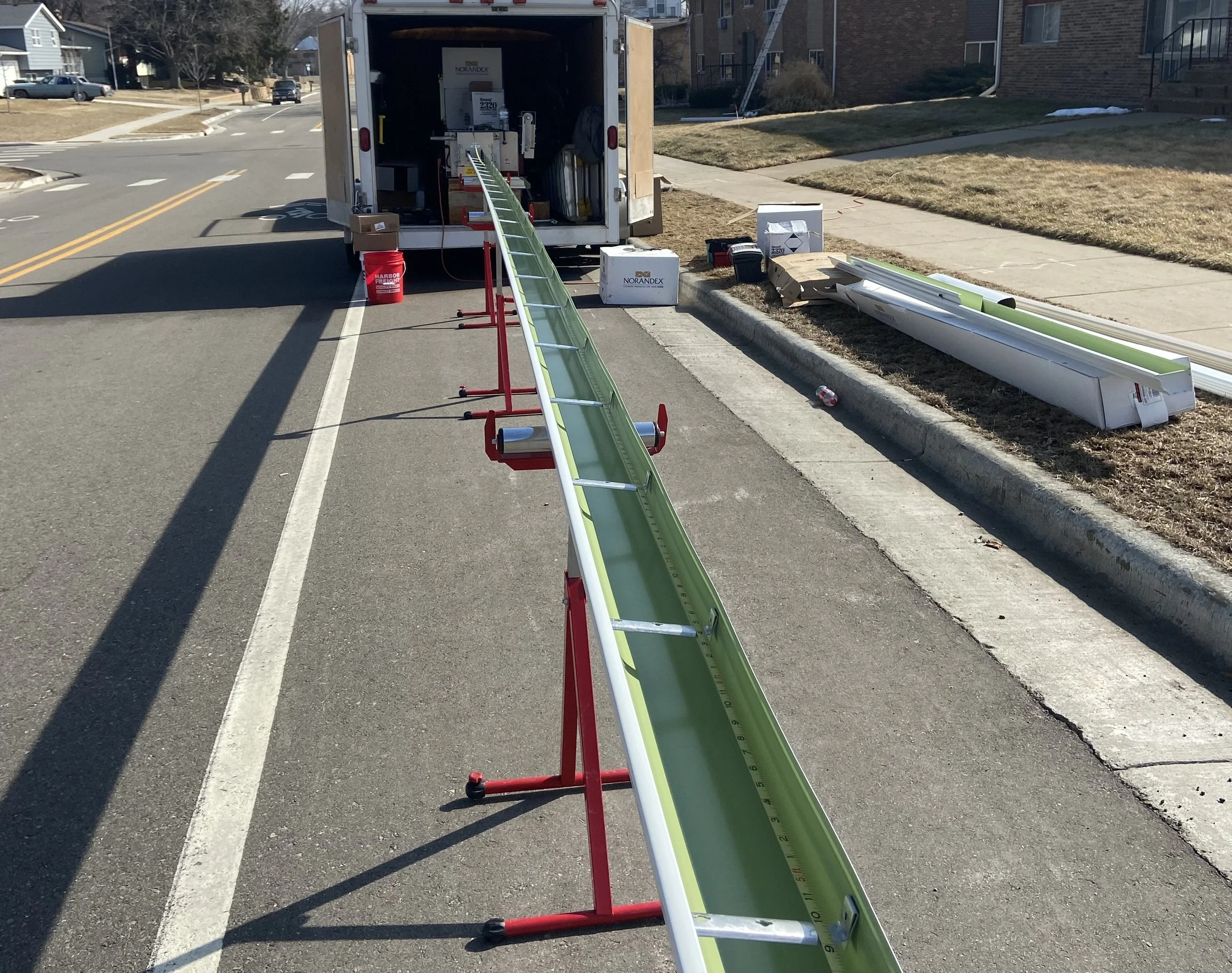 We produce your gutters on-site based on the specs you give us. It’s your responsibility to ensure accurate measurements.